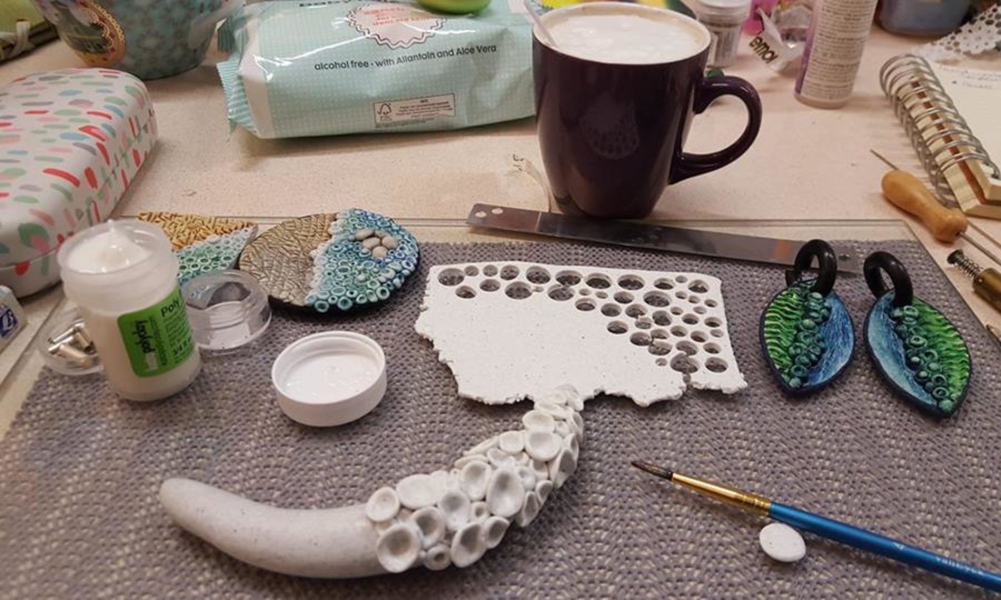 De foto die de omslag siert zal regelmatig wisselen. Deze is tijdens een Guildweekend gemaakt. Heb jij een foto waarvan je vindt dat deze wel op de omslag mag? Hij moet wél zelf gemaakt zijn (met andere woorden niet van internet geplukt zijn in verband met rechten, een boete kan zomaar 1000 euro zijn...). Mail naar info@dutchpolymerartguild.nl en wie weet wordt jouw foto de volgende omslagfoto!